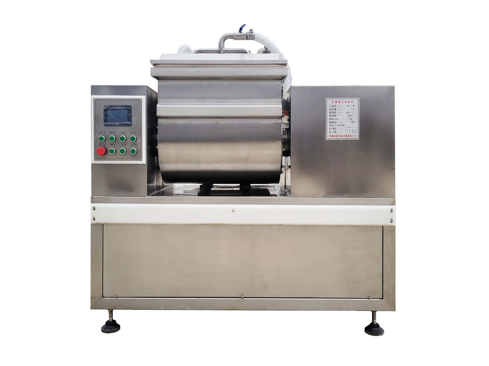 →臥式真空和面機系列  →型號50/75/100/150/200/300型  →功能  主要用來和制餃子皮、餛飩皮、鮮食面、水煮面、掛面等,若更換攪拌器,可適用于速凍行業的各種面食制品的加工。  →特色  1、配備智能觸控顯示屏,參數自由設定,可手動攪拌、可一鍵攪拌。并可根據工藝設定和面時間和真空度。  2、設備由PLC控制,可實現自動起蓋、自動計量加水、自動翻斗、自動進粉、抽真空和面(拌粉)、自動排面功能。  3、獨特的密封結構,有效防止面團受到污染,進一步提高食品安全。  4、和面過程在真空負壓下進行,使面粉中的蛋白質在短時間、充分的吸收水分,形成面筋網絡,從而使面團外表光滑、內部結構均勻,透明度高、口感好。  5、可定制面斗冷卻系統,使成品面團溫度恒定,確保批量生產的產品質量穩定。  6、設備主體采用不銹鋼制造,符合現行有關食品衛生標準。  →主要技術參數產品型號額定容量(kg)攪拌轉速(rpm)主電機(kW)副電(kW)外形尺寸(長×寬×高)ZHW  50型50板式40 攪棒44/887.51.11470×932×1483ZHW  75型75板式40 攪棒44/88111.851440×890×1655ZHW 100型100板式40 攪棒44/88111.851440×890×1794ZHW 150型150板式40 攪棒44/88221.851764×1070×1815ZHW 200型200板式40 攪棒44/88221.851964×1070×1815ZHW 300型300板式40 攪棒44/883432074×1170×2022板式攪拌器滾杠-真空油條包子狼牙棒攪拌器