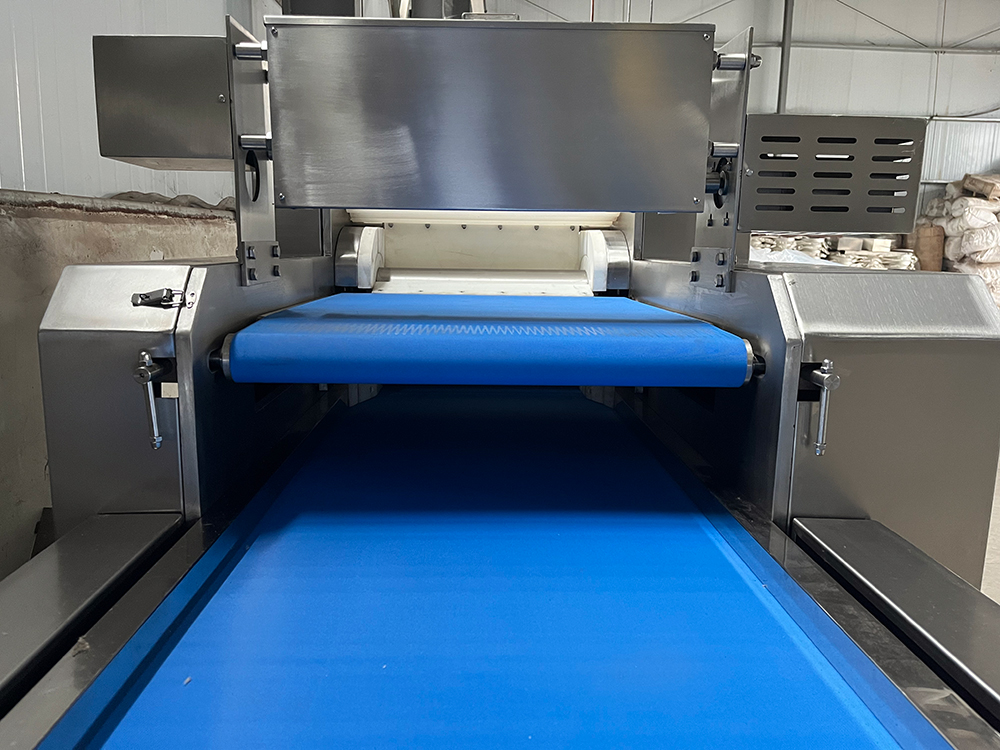 →往復式壓面機  →型號300/400/500/550/600/700型  →功能說明  可自動進行計數、疊層,壓延過的面帶表面光滑,有效提高面帶筋度。  →特色  1、可根據生產需求自行設置壓面次數。  2、采用PLC控制,操作簡單快捷。  3、配有自動撒粉裝置,面帶不粘連,口感好。  4、整機結構美觀,易于清洗。噪音小,性能穩定可靠。  →主要技術參數產品型號主電機功率(kW)輸送電機(kW)單塊壓面重量(kg)軋面能力(T/H)面帶厚度(mm)外形尺寸長×寬×高(mm)300型41457850.2-0.415~402300*740*1032400型5.51.5458480.4-0.715~402380*990*1480500型7.51.5459450.6-115~402380*1090*1480550型7.51.5459450.6-115~402380*1140*1480600型111.5459450.6-115~402380*1190*1480700型111.5460100.7-1.215~302380*1290*1480