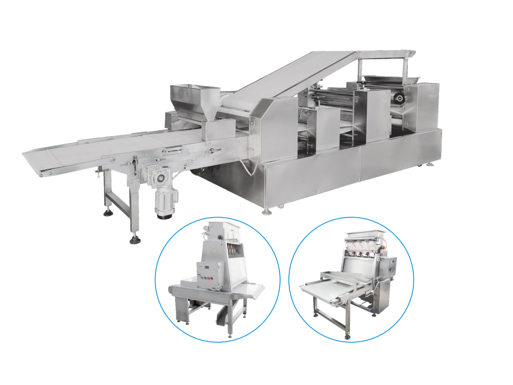型號  型號500/600/700型  生產流程  拌漿機將糖漿加熱攪拌均勻→和面→面團擠出輸送→面餅成型→一次烘烤→噴糖→二次烘烤→冷卻  特色  1、成型機為變頻調速,自動化程度高,更換模具可生產多規格產品。  2、電烤爐通過加熱管加熱,并進行了合理的爐溫分區,節能環保的同時還具有升溫快,降溫少,補溫快等特點。  3、整套設備自動化程度高、操作簡單方便,可生產出多品種、多規格的產品。減輕勞動力,節省人工成本出品穩定,輕松實現量產化。  4、機器安全、防護、可靠、穩定性高。電氣安全符合國家標準。  5、可以根據客戶場地及工藝要求進行定制。  電烤爐技術參數